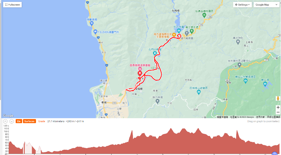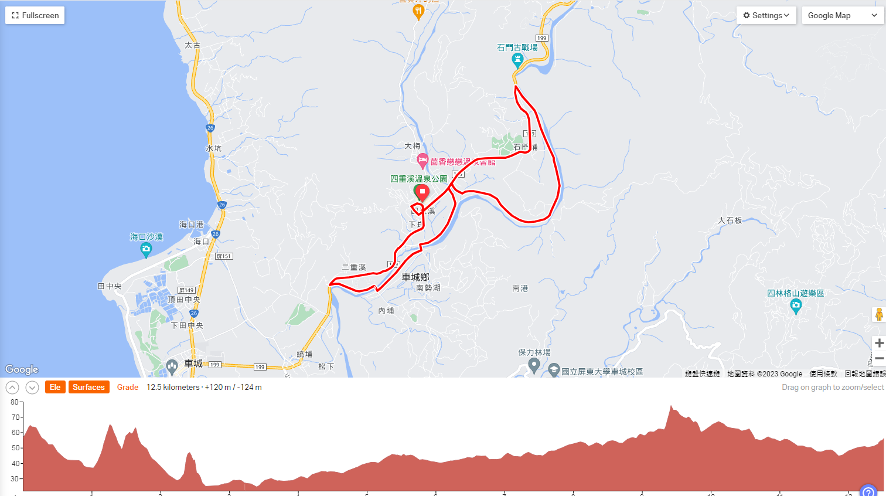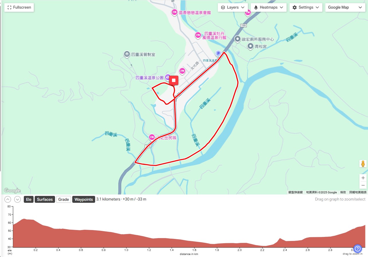 四重溪公園(起點)-199縣道-堤防-199縣道-玉泉巷-四重溪公園(終點)